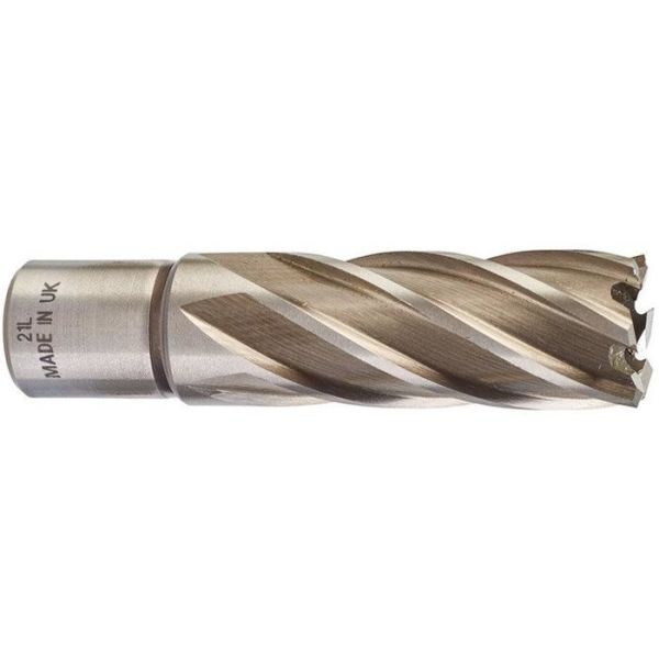Art.nr: JZ12139-8Kärnborr med Weldon-fäste och en diameter på 21 mm för att borra i metall.