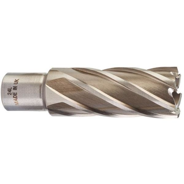 Art.nr: JZ12139-11Kärnborr med Weldon-fäste och en diameter på 24 mm för att borra i metall.