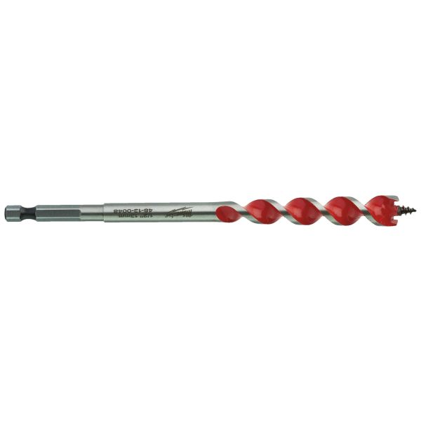 Träborr på 165 mm med 1/4" Hex-fäste. Ett steg upp från flatborr i kvalitet och prestanda - snabbare borrning, längre livstid och färre fastkörda borr. Borren har dubbla skärkanter för snabb och aggressiv borrning vilket ger upp till 10 gånger snabbare borrning jämfört med ett traditionellt centrumborr. Den koniska designen ger obesvärad borrning och färre fastkörda borr även i tuffare applikationer, vilket ger mindre brott. Gängad borrspets borrar enkelt genom både mjuka och hårda material. Polerad och pulverlackerat spiralspår för snabb spånborttagning.