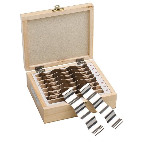 Art.nr: 3116257PELA 74250 är ett set med vågformade parallellbitar. Består av 8 par med mått 25, 27, 29, 31, 33, 37 och 39 mm.
