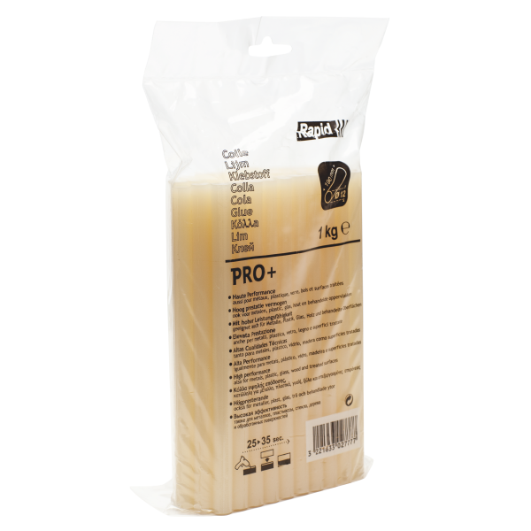 Art.nr: 4081720Rapid Plus Limstavar för professionellt bruk lämpade för limapplikationer med plast, metall, glas, trä och behandlade ytor. Ljusgul färg.