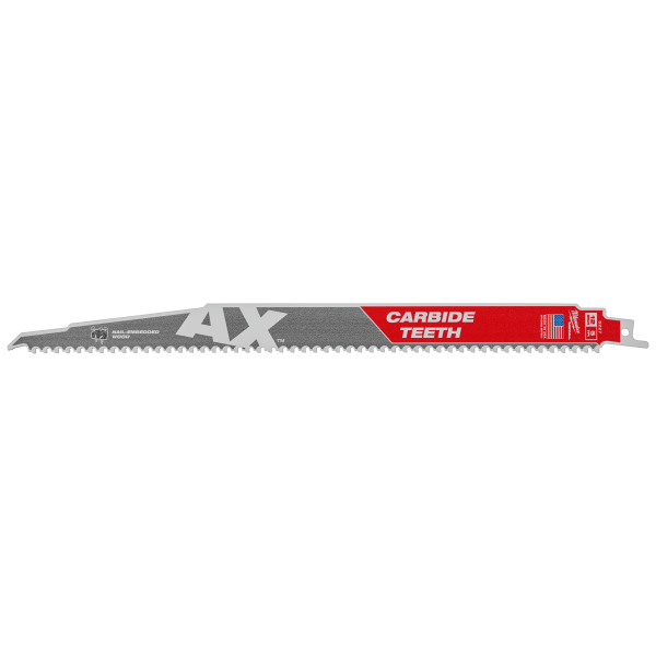 Milwaukee TCT AX är ett tigersågblad med upp till 50x längre livslängd än standard Bi-Metall blad. Karbidtänder ger längre livslängd och extrem hållbarhet i de tuffaste applikationerna. Kapar även härdade skruvar och spik. Den är även upp till 2x snabbare än standard Bi-Metall blad: Snabb och aggressiv 5TPI geometri möjliggör snabbare kapning i trä med spik och skruv samt en rad andra byggmaterial (trä/spik/bultar/skruv/gjutjärn). Med TCT AX kan du få upp till 25% fler kapningar per laddning jämfört med standard Bi-Metall blad. Optimerad för användning med batteridrivna tigersågar.