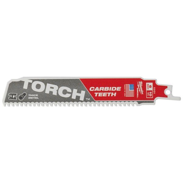 Milwaukee TCT TORCH är ett tigersågblad med karbidtänder. Karbidtänder ger längsta livslängden i tjock metall. TCT TORCH har upp till 50x längre livslängd jämfört med Bi-Metall blad. En 1,27 mm tjock och rubost klinga för raka och exakta kapningar och 25 mm bladhöjd ger förbättrad stabilitet och minimala vibrationer. Bäst för gjutjärn och all tjock metall.