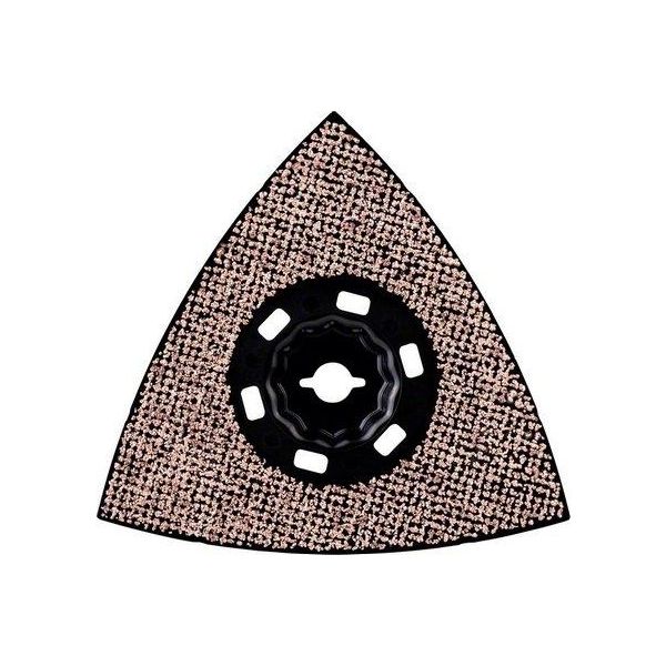 Slipplatta med Starlock Max-fäste för slipning av olika material. Delta-formen når långt in i hörn med effektivt slipresultat. Starlock Max-fästet möjliggör maximal kraftöverföring och smidiga byten av tillbehör på multiverktyget.
