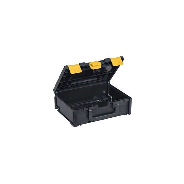 Kraftig och stabil transport- och förvaringslåda av hög kvalitet i ABS plast och skydd enligt skyddsklass IP43 för maskiner, verktyg och tillbehör. Modulsystemets konstruktion gör att respektive låda kan öppnas separat utan att behöva lyfta bort nästa låda. Mått: Utsida:396 x 296 x 117 mm Insida: 360 x 265 x 80 mm
