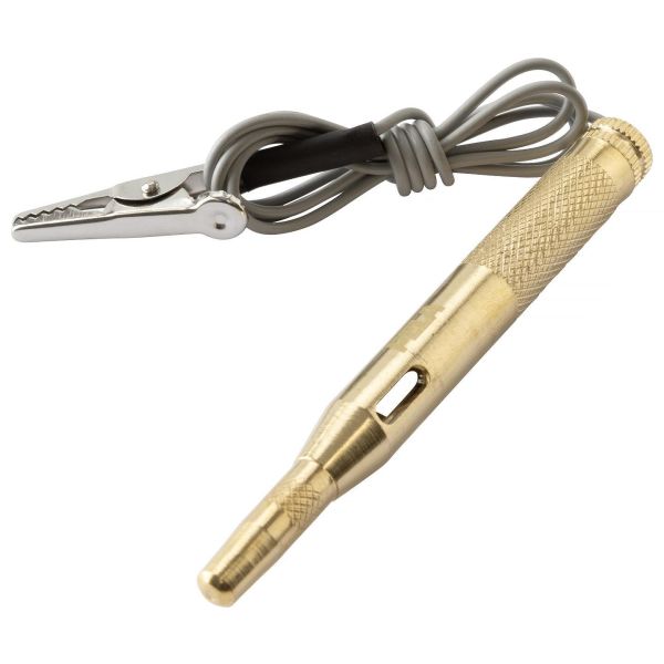 Tack vare den inbyggda lampan ser du direkt om du har kontakt, och den smidiga krokodilklämman gör det enkelt att ansluta till jord. Perfekt för att testa strömkällor och jordpunkter på fordon, båtar och maskiner. Robust konstruktion och enkel användning – ett måste i varje verktygslåda.
