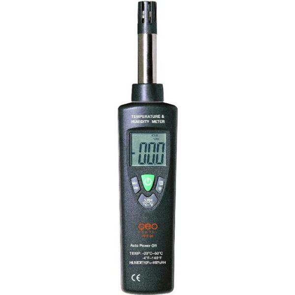 Prisvärd och enkel mätare för övervakning av temperatur och luftfuktighet i luftmiljö. Snabb responstid och grundläggande funktioner med Max-värde, belyst display etc.