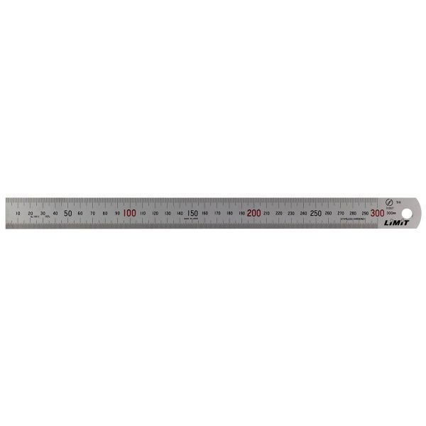 Stålskala i härdat rostfritt stål. Med mattförkromad yta för bländfri avläsning. Längderna 150, 300 och 600 mm är graderade i millimeter i överkant och halv millimeter i underkant. Längderna 1000, 2000 och 3000 mm är graderade i halv millimeter i överkant upp till 100 mm och därefter hela millimeter samt nedtill i hela millimeter hela längden. Baksidan blank på samtliga.