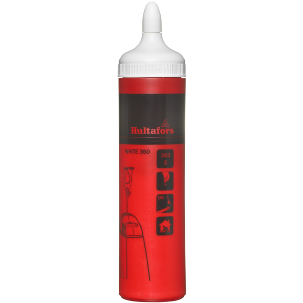 Hultafors WHITE 360 är en snörslåkrita som är den enda kritan som går att måla över. Den används mestadels för arbeten inomhus.