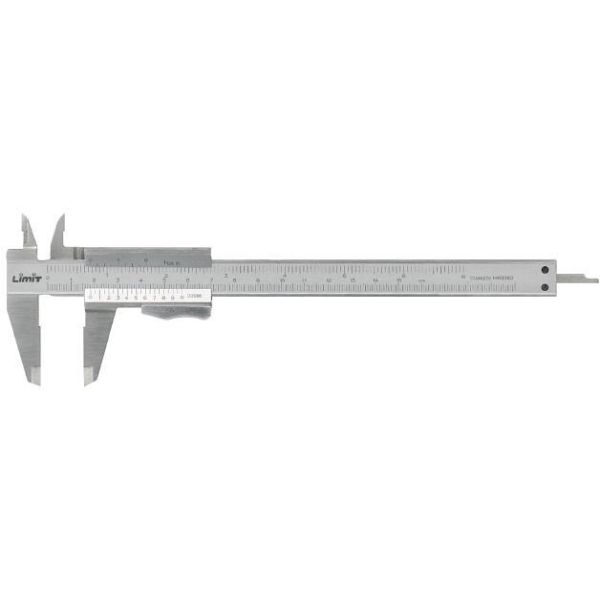 Skjutmått av rostfritt stål på 200mm med knapplås. Skjutmått med 4-funktionsutförande för utvändig mätning, invändig mätning, höjd- och ansatsmätning och djupmätning.