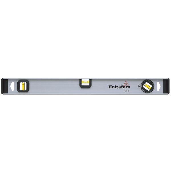 Hultafors I360 är ett vattenpass med stark I-profil av aluminium som mäter 50x23 mm och väger 640 g/m. Okrossbara rörlibeller med mycket hög genomskinlighet och hållbarhet. En libell är vridbar i 90°.