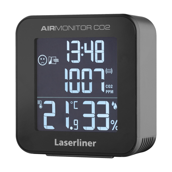 Laserliner AirMonitor CO₂ är ett pålitligt instrument för att mäta och utvärdera luftens kvalitet inomhus. Den är utvecklad för att kontinuerligt övervaka kolmonoxidnivåer (CO₂), luftfuktighet och omgivningstemperatur.