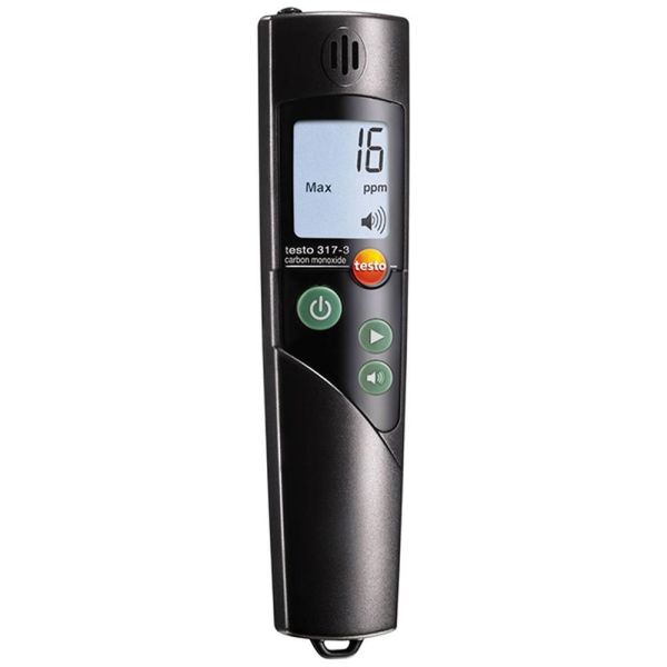 Testo 317-3 är en gasmätare för mätning av kolmonoxid i omgivningsluften. Några sekunder. Det är allt som krävs för att vara på den säkra sidan och testa den omgivande luften för kolmonoxid. testo 317-3 mäter koncentrationen av kolmonoxid i den omgivande luften och presenterar avläsningarna på en lättläst skärm. CO-mätaren har både ett visuellt och ett hörbart larm som utlöses när ett gränsvärde överskrids. Gränsvärdena kan justeras individuellt.
