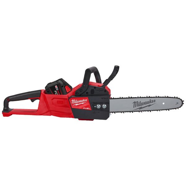 Milwaukee M18 FUEL kedjesåg med kolborstfri POWERSTATE-motor och 35 cm svärd. Håller hastigheten och har kraften att överträffa bensinmotorsågar i de mest krävande sågapplikationerna. Kapar 150 st. 100 mm x 100 mm reglar på ett fulladdat batteri (12,0 Ah). Variabel hastighet, når full hastighet på under en sekund. Kedjehastighet 12,4 m/s. Vikt med batteri 6,4 kg. Levereras med 2 x 12,0 Ah REDLITHIUM FORGE batterier, 130 min. M12-18 FC laddare, kedjeolja, kedjeverktyg och svärdskydd i en kartong.