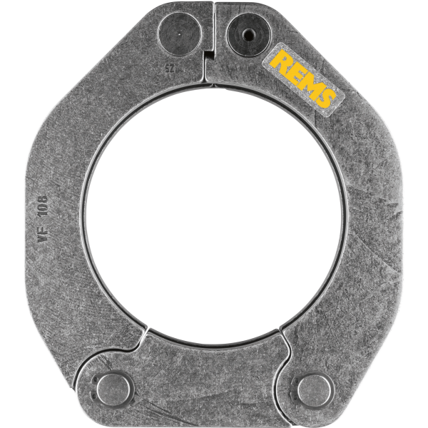 REMS 572818 R är en pressring av typen VF 108 (PR-3B) med 3 svängbart styrda pressbackar i en ring med led, drivs med mellantång.