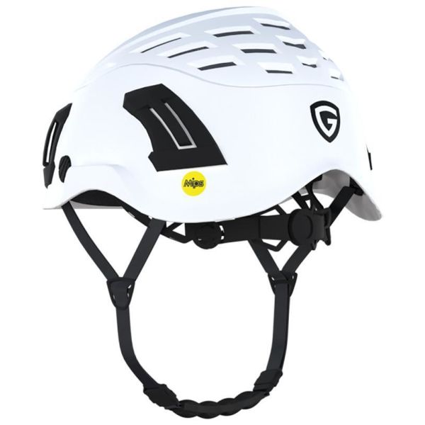 Denna industrihjälm (EN397) är utrustad med MIPS och twICEme. Utvecklat i samarbete med forskare från KTH och Karolinska Institutet. Guardio Armet är nästa generations huvudskydd för proffs. Sammansatt av ett tufft ABS-yttre skal och ett EPP-foder som bättre tål flera stötar utan att minska hjälmens integritet. En ergonomisk design som är lätt, bekväm och välbalanserad med bra ventilation. Justeringshjulet gör att hjälmen passar de flesta huvudstorlekar. Utrustad med 4-punkts hakrem, integrerade öppningar för hörselskydd, klämmor för pannlampor och ett ovan standard visir som tillbehör.