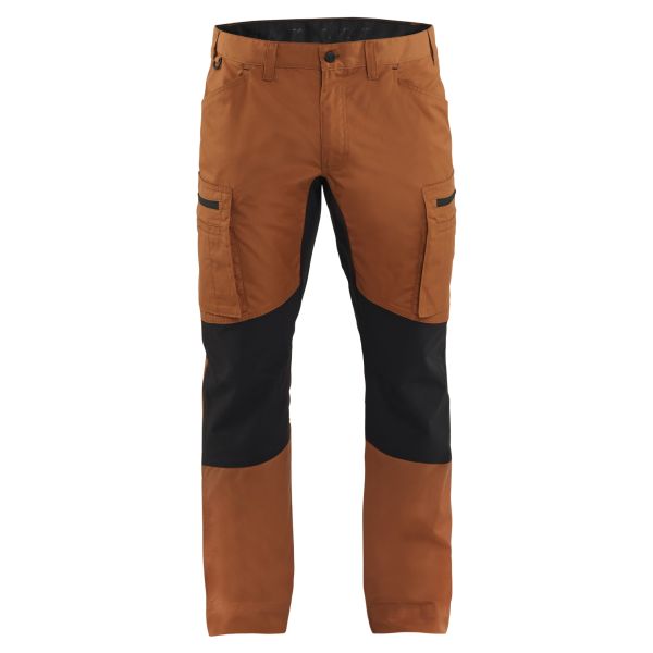 Modern servicebyxa i ett lätt men slitstarkt material med snabbtorkande egenskaper - vilket gör byxan perfekt för arbete inomhus, eller utomhus i varmare väder. Modellen har smalare passform och förböjda knän för ökad komfort. För optimal rörelseförmåga har byxan stretchpaneler på noga utvalda ställen, såsom stuss, knän och i gren. Byxan har en penn- och knivficka anpassad efter höger- och vänsterhänta, benficka med innerficka i mesh för mobil, samt förlängningsmöjlighet i benavsluten.