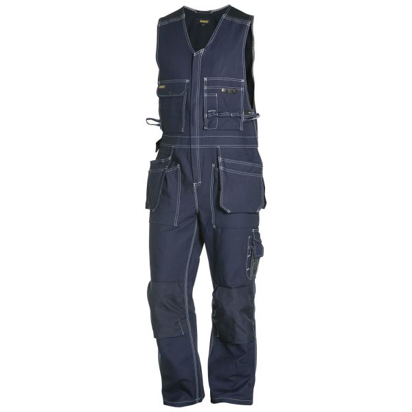 Västbyxa med stretch i ryggen, CORDURA®-förstärkta på knän och bakfickor, justerbar vid axelsöm, hammarhank i sidan. Metallknappar, innerbenssöm med 3-nålsstickning, dolt envägsblixtlås i plast. Benficka med pennficka, telefonficka och ID-kortsficka, bröstfickor - löst hängande med tryckknappar och säkerhetsband, en med lock och en med pennficka, patentknappar och knivhållare. Framfickor med bälg, knäskyddsfickor med möjlighet till två placeringsnivåer, spikfickor - kan stoppas i de bälgade framfickorna, spikfickor bak. Telefonficka, tumstocksficka med knivhållare och pennficka. Material: 100% bomull, twill, 370 g/m².