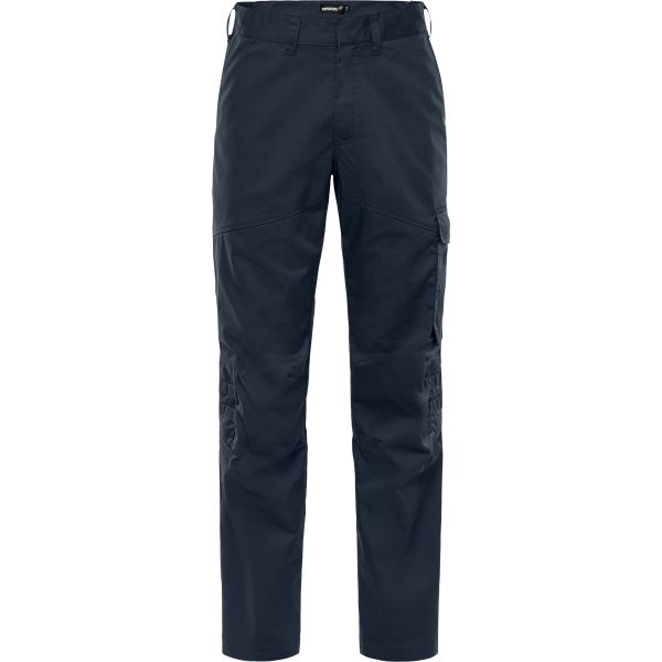 Dambyxor i ett lätt och slitstarkt material som är delvis tillverkat av återvunnen polyester. Bekväma arbetsbyxor med mekanisk stretch och ribbstickad stretch i midjan. Godkända för industritvätt. Miljödeklarerad med EPD (Environmental Product Declaration). Koncept: Forsbo. Delvis återvunnet material / Miljödeklarerad (EPD) / Mekanisk stretch / Ribbstickade stretchpartier i midjan / Dold knapp fram / 2 framfickor / 2 bakfickor / Tumstocksficka och verktygsficka / Benficka med hälla för id-kortshållare under lock med dold tryckknapp / Förböjda knän / Benlängden kan förlängas 5 cm / Godkänd enligt EN 13758-2 UPF 40+ UV-skydd / Testad för industritvätt enligt ISO 15797 / OEKO-TEX-certifierad / EPD reg.nr 13205 på environdec.com.
