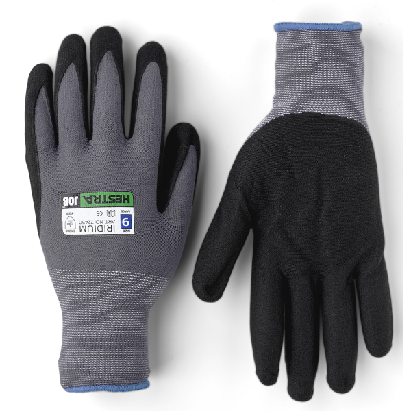 Hestra Job Iridium är en tunn och smidig handske för industri- och montagearbeten som kräver hög precision. Stickad i tunn nylon för bra passform och komfort. Halvdoppad i micro-foam nitril. Egenskaper Bra greppSmidigKategori: Anläggning, bygg och verkstad