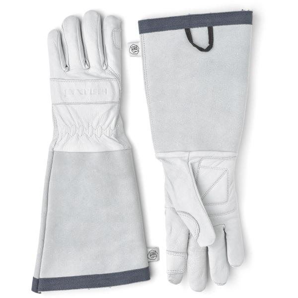 Hestra Job Garden Rose Glove är en smidig trädgårdshandske som är tillverkad i slitstarkt getskinn. Handsken har en lång krage i nötspalt som skyddar underarmarna mot taggar från till exempel rosor och olika buskar. Handflatan är försedd med lätt vaddering för extra komfort.