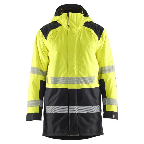 Vinterparkas i varsel som med sin utformning och quiltat foder både värmer och hjälper dig när du är ute på jobb. Är vind- och vattentät med tejpade sömmar. Har förstärkningar i front och på ärmar samt har en rymlig, skön passform med ryggpanel i stretch för extra komfort. Kan justeras i midjan och har blixtlås i sidorna för att underlätta och ej begränsa rörelse vid arbete på knä eller hukande. Huvan är avtagbar och anpassad för hjälmar och hörselkåpor.