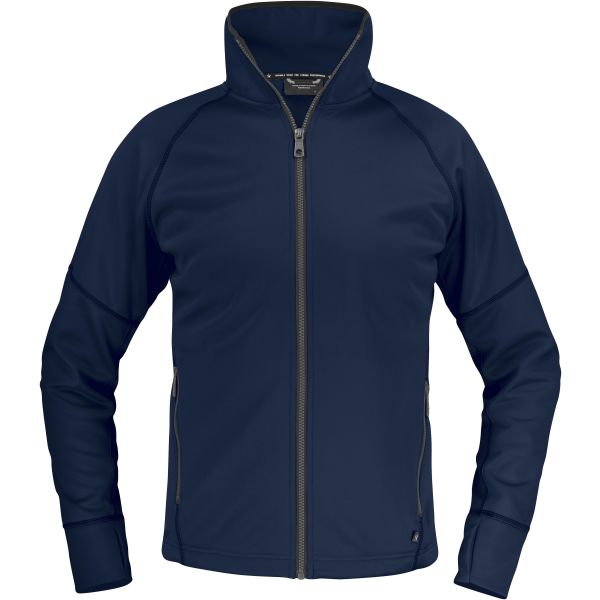 Enfärgade med mörkgrå flatlock-sömmar som snygg kontrast. Snedställda sidosömmar som gör att de två sidofickorna verkligen syns. Raglanärm för mer rörlighet i axel och arm. Ordentlig dragkedja och puller för bättre grepp och justerbar i nederkant. Borstad insida. Material 100 % polyester.