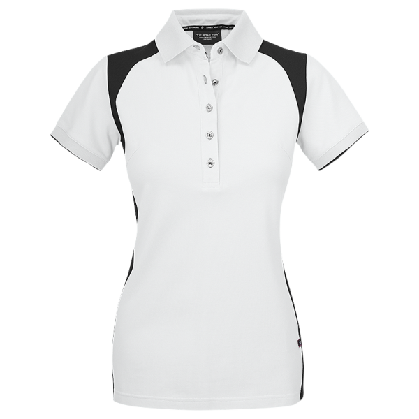 Texstar PSW7 är en pikétröja med fem knappar och kontrastfärg i sidopaneler, över axlarna och i ärmsluten. Med 5 % stretch och unik skärning i ryggen. Modernt elastiskt nackband som gör att plagget håller formen. Dammodellen har 5 knappar.