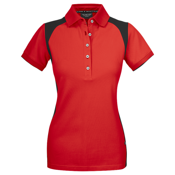 Texstar PSW7 är en pikétröja med fem knappar och kontrastfärg i sidopaneler, över axlarna och i ärmsluten. Med 5 % stretch och unik skärning i ryggen. Modernt elastiskt nackband som gör att plagget håller formen. Dammodellen har 5 knappar.