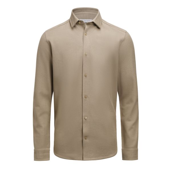 Hicksville är en modern skjorta tillverkad i ett strukturerat våffelstickat tyg. Tyget består av ekologisk bomull och återvunnen polyester. Skjortan har en dold button down-krage och ton-i-ton-knappar för ett rent och stilrent uttryck. Finns i Contemporary Fit.
