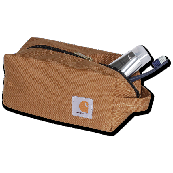 Tillverkad i extra slitstark 1200 denier polyester med Rain Defender™-finish som skyddar mot fukt och spill. Det rymliga huvudfacket har en vattenresistent insida – perfekt för förvaring av toalettartiklar eller annan utrustning. Huvudfacket stängs säkert med dragkedja, och framsidan pryds av den klassiska Carhartt-etiketten. En robust och praktisk necessär för både resa och vardag.