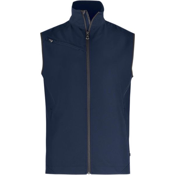 Det finns inget bättre än att ha en värmande Softshellväst på sig, vår nya 2-lagersväst har en skön modern passform med hög krage. Modellen är lite längre så att den inte åker upp när du böjer dig framåt. Två sidfickor med blixtlås och en dold D-ring i höger ficka för passerkort eller nycklar. Material: 100 % Polyester, 230 g/m2.