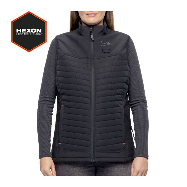 MILWAUKEE M12 Puffer värmeväst dam - HEXON HEAT TECHNOLOGY ger en överlägsen värmeupplevelse med snabbare uppvärmning och bättre värmespridning. Heldags drifttid med upp till 12 timmar med en enda laddning av M12REDLITHIUM 3.0 Ah-batteri. 3 värmezoner: bröst och rygg. Enkel pekstyrd värmekontroll – 3 värmelägen: Hög, Medel, Låg. Kompatibel med IRPSU3 värmekläders platta strömkälla – ger komfort och möjliggör styrning via app. Lätt och mycket slitstark ripstop-polyester ger en smidig design som kan bäras som ytterlager eller mellanlager (100% polyester i både ytter- och innerskikt). Ficka med dragkedja för batterigenomföring: Placera batteriet i fram- eller bakfickan för ökad komfort. Vatten- och vindtålig, ger komfort och hållbarhet i tuffa miljöer. Justerbar dragsko i midjan och muddar håller värmen kvar. Flexibelt batterisystem: fungerar med alla MILWAUKEE M12 M12-batterier. Tål maskintvätt och torktumlare.