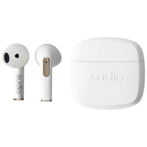 Sudio N2, trådlösa hörlurar med open ear-passform. Lyssna på musik och ta emot samtal när du är på språng. Ta bara ut dem ur laddningsfodralet och börja dagen. Hörlurarna har en stänksäker klassificering med IPX4.