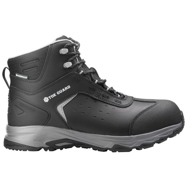 Toe Guard Wild WR Mid är en skyddskänga med PU-belagt spaltläder som med sin rymliga passform erbjuder optimal komfort. PU-förstärkning vid tåpartiet garanterar en extremt slitstark känga. För bästa möjliga passform och komfort är kängan designad med få detaljer och sömmar tillsammans med en textilkrage. Vattentätt membran hindrar vatten från att tränga in. Toe Guard Wild WR Mid kommer även med en oljebeständig, värmetålig och halkbeständig gummisula med låg vikt. ESD-funktion enligt BS EN IEC 61340-4-3:2018.