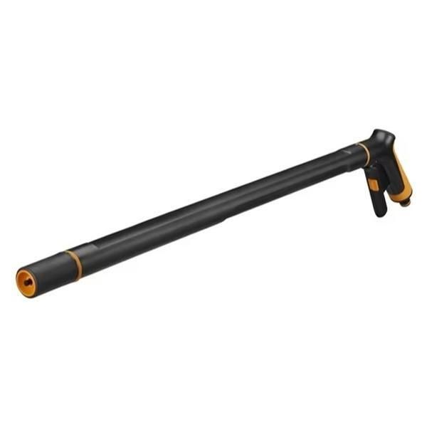 Stavpistol från Fiskars för enkel och effektiv bevattning. Vrid SoftGrip™-munstycket för att välja mellan jetstråle eller spolstråle. Den ergonomiska front triggern kan justeras steglöst samt spärras vid användning under längre tid. Handtaget passar till andra Fiskars utbytbara munstycken. Hållbar design med integrerat aluminiumskaft. Håller värmen bättre vid kall väderlek jämfört med metallmunstycken.