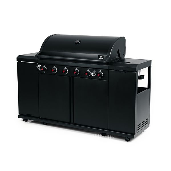 Gasolgrillen 6.1 maxX är en svart grill med kraftfulla och precisa brännare med sex justerbara brännare, var och en med en effekt på 3,5 kW. Dessutom har Gasolgrillaren 6.1 maxX en MaxX-Zone som är en inbyggd infraröd sidobrännare som når upp till imponerande 800 °C, perfekt för att skapa en krispig stekyta.