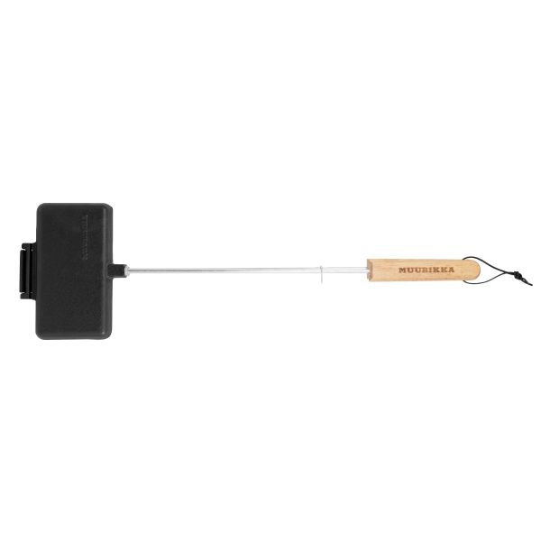 Slitstarkt mackjärn av gjutjärn, med trähandtag. Perfekt smörgåsjärn för att tillaga varma mackor på grillen eller över den öppna elden. Längd med handtag 70 cm.
