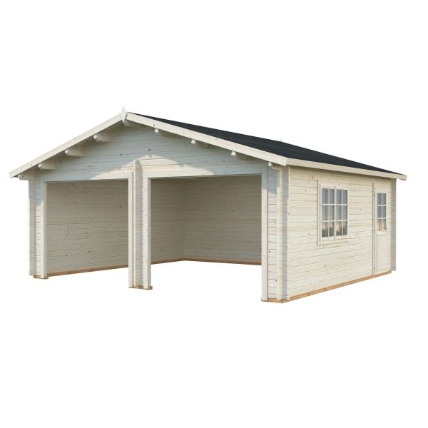 Garaget Roger är ett dubbelgarage som passar perfekt antingen för två bilar eller kompletterande förvaring av exempelvis uteredskap, trädgårdsmöbler och bildäck. En enkel konstruktion med vindtäta dubbelhaksknutar och djupimpregnerade grundbalkar som gör garaget stabilt och hållbart under lång tid. Detta allsidiga garage har ett stort fönster och en halvglasad dörr på ena gaveln, vilket gör det enklare att få tillgång till garaget exempelvis i närmare anslutning till huset.