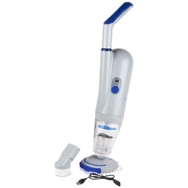 Art.nr: 4067101Sladdlös batterirengörare för mindre pooler och badtunnor. Idealisk för svåråtkomliga ställen med medföljande liten borste. Lämplig för 40 minuters användning per laddning.