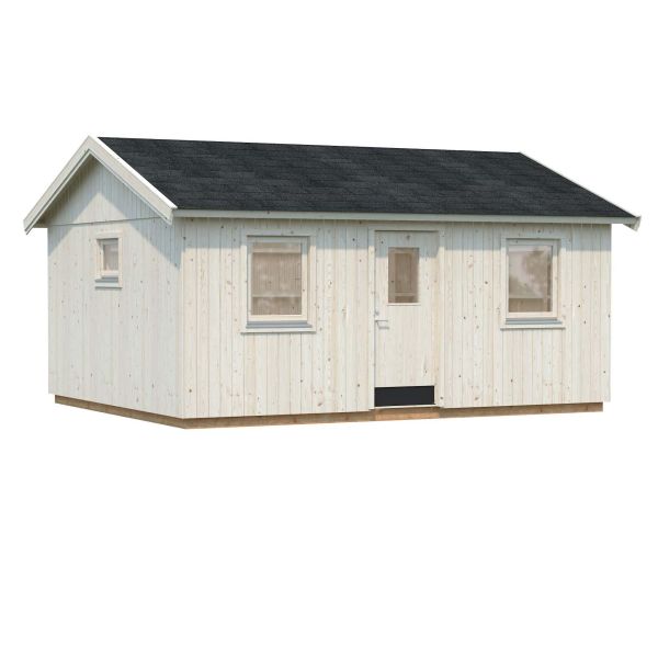 OBS! Huset levereras omålat. Takbeläggning ingår inte i leveransen, men finns att köpa som tillval.