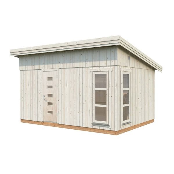 Stugan Etta från Palmako har en modern och stilren design som gör att den passar utmärkt i alla miljöer. Denna omtyckta stuga har ett skandinaviskt uttryck med det flacka taket, smala fönster och den moderna dörren med små fönster. Ett perfekt extrautrymme att använda som gästhus, båthus, hemmakontor eller varför inte ett eget litet gym? Stugan levereras i en komplett byggsats och med möjligheten att placera väggar, dörrar och fönster dom du själv önskar. Det gör att du enkelt anpassar utseendet efter eget behov och smak. Det går dessutom utmärkt att lägga till fler fönster för ett ännu större ljusinsläpp! Ingår i serien Palmako Nordic Houses.
