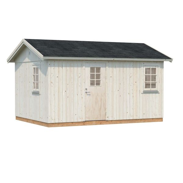 Stugan är tillverkad i långsamtväxande nordisk gran, ett hållbart material med hög kvalitet och lång hållbarhet. Den kompletta byggsatsen består av färdiga väggelement och med alla nödvändiga fästelement. De färdiga väggelementen är förstärkta med vind- och fuktskyddande fibermembran som gör stugan extra motståndskraftig mot tuffa väderförhållanden och minimerar risk för fuktskador. Dörrarna är isolerade med 40 mm EPS-isolering, har sparkplåtar och riktiga lås så du kan känna dig säker. Väggarna är även förberedda för isolering vid behov.