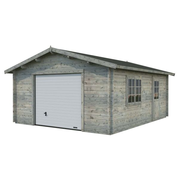 Garaget Roger är ett generöst enkelgarage som passar perfekt för din bil samt förvaring av exempelvis uteredskap, trädgårdsmöbler och bildäck. En enkel konstruktion med vindtäta dubbelhaksknutar och djupimpregnerade grundbalkar som gör garaget stabilt och hållbart under lång tid. Detta allsidiga garage har en rejäl takskjutport som både sparar utrymme och gör det smidigt att ta sin in och ut ur garaget. Garaget har dessutom ett stort fönster och en halvglasad dörr på ena gaveln, vilket gör det enklare att få tillgång till garaget exempelvis i närmare anslutning till huset. Det gör det även möjligt att dela av garaget invändigt och få ett enskilt förrådsutrymme.