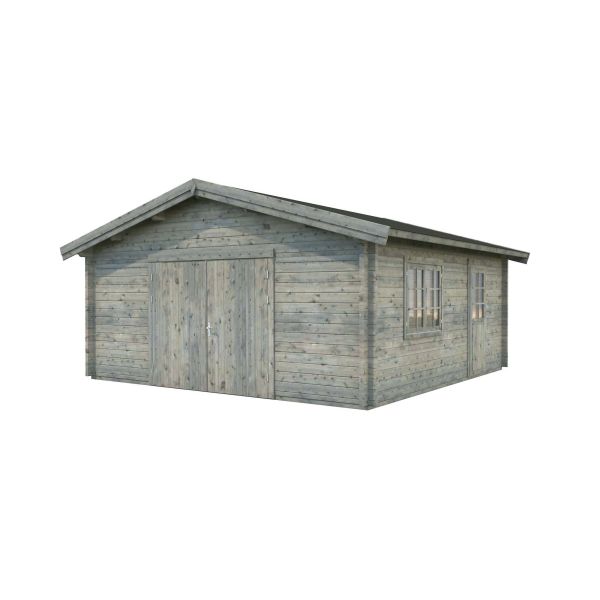 Garaget Roger är ett praktiskt fristående utrymme som passar perfekt för din bil samt förvaring av exempelvis uteredskap, trädgårdsmöbler och bildäck. En enkel konstruktion med vindtäta dubbelhaksknutar och djupimpregnerade grundbalkar som gör garaget stabilt och hållbart under lång tid. Detta allsidiga garage har förutom stora dubbeldörrar i trä, även ett stort fönster och en halvglasad dörr på ena gaveln, vilket gör det enklare att få tillgång till garaget exempelvis i närmare anslutning till huset. Det gör det även möjligt att dela av garaget invändigt och få ett enskilt förrådsutrymme. Dubbeldörrarna i trä smälter in i helheten och gör det smidigt att gå in och ut i garaget utan att behöva öppna hela porten. Dörrarna levereras med riktiga handtag med lås.