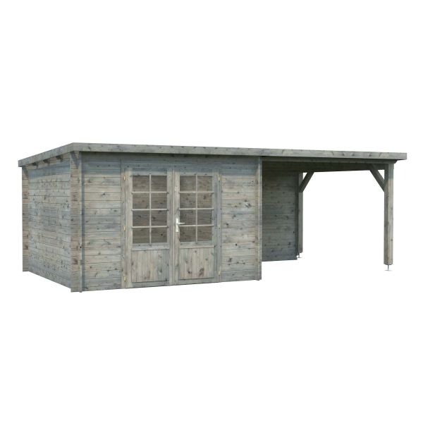 Stugan Ella från Palmako har en perfekt kombination av förvaring både inne och ute. Det flacka taket och raka linjerna skapar ett modernt uttryck och blir ett stilfullt inslag i din trädgård. Ella har en öppen del som enkelt kan göras till en mysig uteplats. Samtidigt har Stugan Ella flera praktiska fördelar som exempelvis förvaring både utomhus under tak och helt inomhus. Stugan knuttimras med 28 mm tjocka väggar och kan byggas med förrådsdelen antingen höger- eller vänsterställd. Kombinera gärna med väggpaneler.