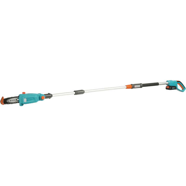 GARDENA TCS är en 18V teleskopisk stångsåg som är praktisk, kompakt och kapar med precision. Med en knivlängd på 20 cm och ett teleskopskaft som kan förlängas når du grenar på upp till fyra meters höjd – utan att behöva klättra eller utsätta dig för risker på en svajig stege. Eftersom den teleskopiska sågen bara väger 3,5 kg är den lätt att arbeta med. Det smala kaphuvudet är praktiskt på två sätt: Om du lutar det når du svåråtkomliga ställen i trädtopparna. Du kan också hacka upp grenar som ligger på marken utan att behöva stå på knä eller böja dig ned. På så sätt kan du enkelt få klippresterna i ett behändigt format och göra av med det på ett enkelt sätt.