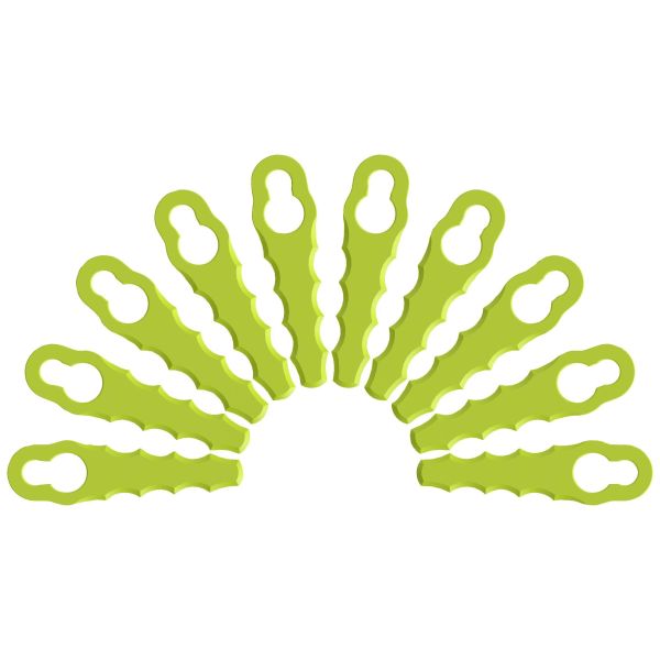 Ryobi RAC158 är ett set plastknivar till trimmerhuvud. 10 stycken reservknivar för trimmerhuvud med plastknivar. Passar till trimmerhuvud RAC155 (batteridriven) och RAC157 (sladd).