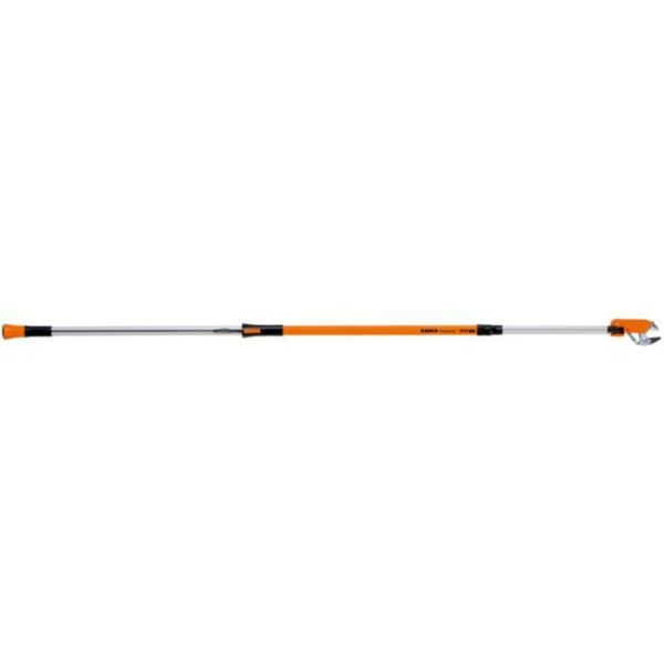 Bahco ATP-230-410 är en robust toppsax med teleskopskaft som ger en längd på 2370-4110 mm. Saxen kan öppnas upp till 32 mm och det roterande skärhuvudet kan justeras i en vinkel upp till 230°. Toppsaxen passar för både färskt och torrt trä och de Xylan®-behandlade skären minskar friktionen. Har ett bekvämt övre grepp och ett extra lägre grepp för extra längd.