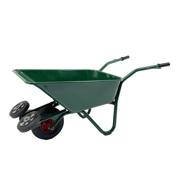 Hörby Bruks murbrukskärra är utrustad med två extra hjul som underlättar tippning i sidled. Denna funktion gör det enkelt att fördela murbruk, asfalt eller betong längs en yta på ett jämnt och kontrollerat sätt, vilket sparar både tid och kraft vid arbetet. Kärran är konstruerad med en djup och smal form som ger god framkomlighet även i trånga utrymmen. Den helpressade korgen är svetsad direkt på underredet för maximal stabilitet och hållbarhet. En slät insida förhindrar att material fastnar vid bulthuvuden, vilket gör den lätt att arbeta med och rengöra. De kraftiga skalmarna är utrustade med knogskydd för ökad säkerhet, och benstöden har slitplattor som ger extra tålighet vid frekvent användning. Helsvetsad proffskärra i 1,35 mm plåt. Tillverkad i Sverige.